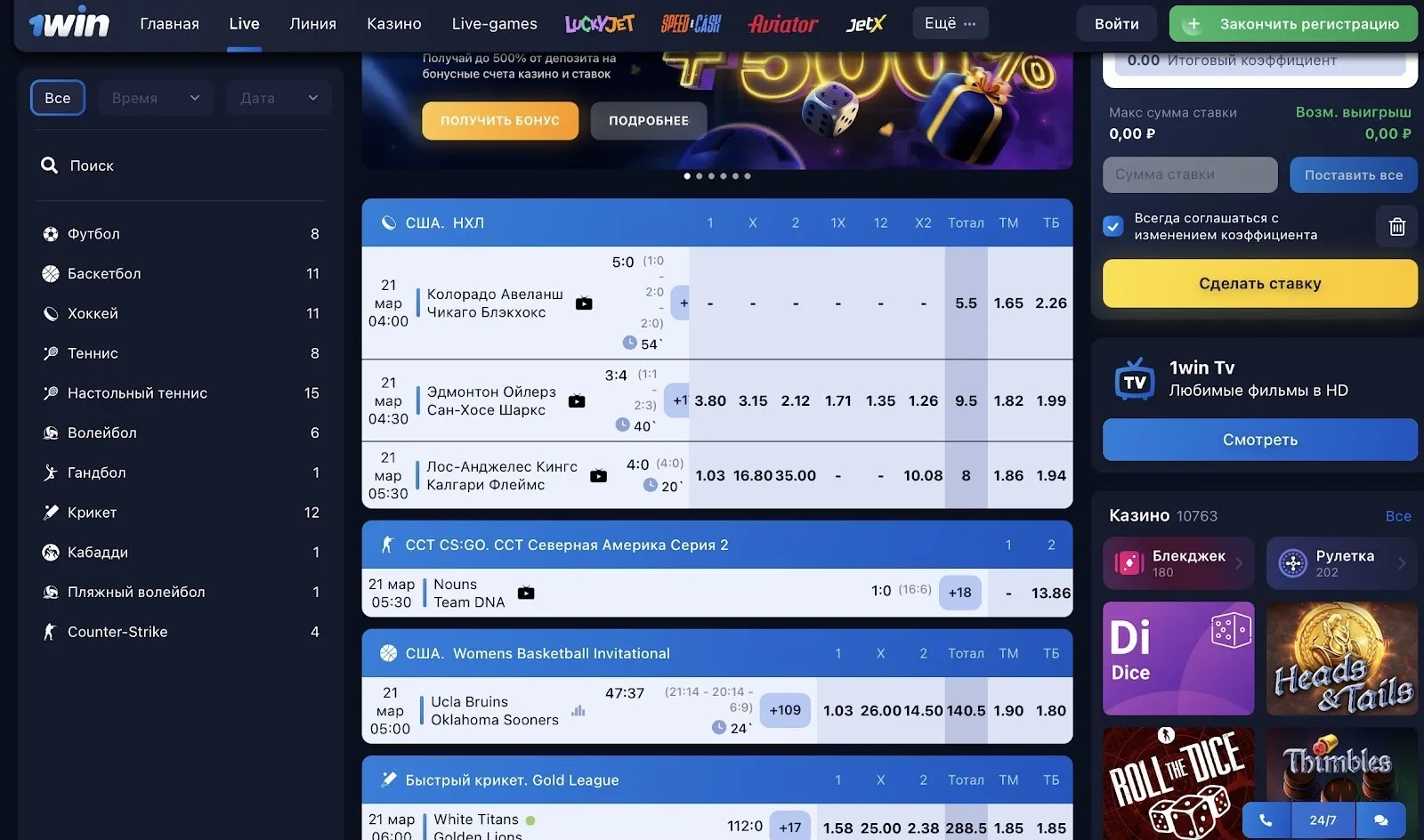 Лайв-ставки 1win